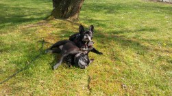 Mijn tweede hond "Leon" (ook een Franse bulldog uit de dierenbescherming, 9 jaar oud) is ook een veelvraat. Toen ik hem kreeg had hij een doffe, schilferige en vettige vacht. Hij had een normaal gewicht, kreeg goedkoop droogvoer en ik kreeg te horen dat hij allergieën had. Toen kreeg hij ook Anifit. Zijn vacht is nu prachtig glanzend en ik kan geen allergieën meer ontdekken. Hij begon echter af te vallen met dezelfde hoeveelheid als mijn hond krijgt. Hij is een bundel energie. Hij verliest wat hij eet als hij langsloopt. Mijn begeleider adviseerde me toen om vlokken toe te voegen. Ik geef hem nu een mix van groente-, rijst- en appelvlokken en voeg dat toe aan zijn dagelijkse portie, die het dubbele is van die van Odessa. Beide honden drinken alleen als het buiten te warm is, want ik week de vlokken van tevoren in warm water.